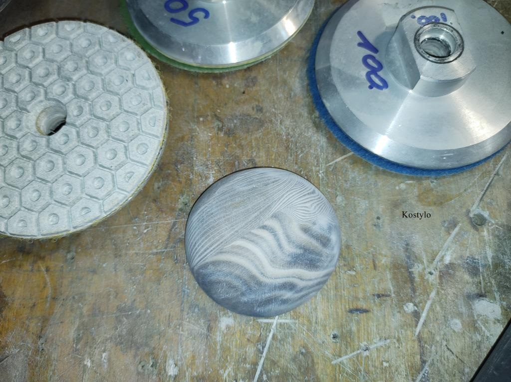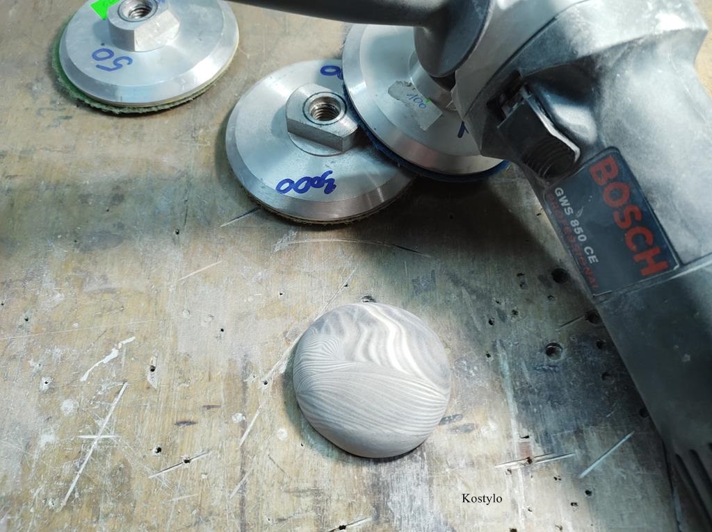 Meanwhile, we also hand-crafted the stone setting from a very rare striped flint with a beautiful pattern and polished it to a high gloss.