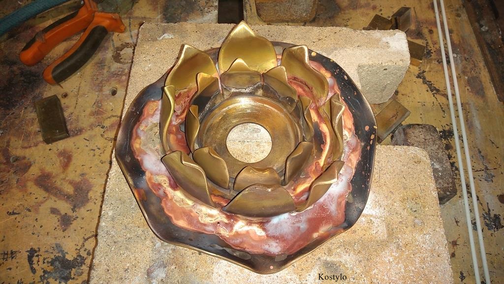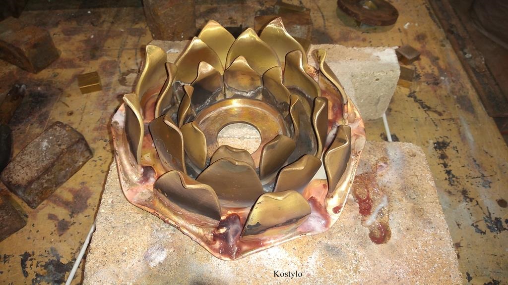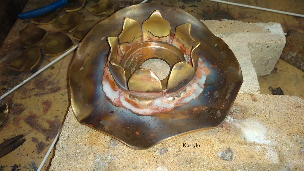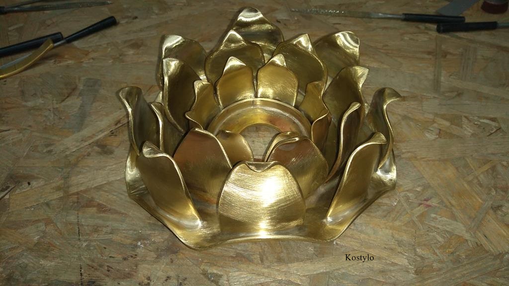 The lotus flower’s petals were also cut from brass sheets in appropriate dimensions and proportions.