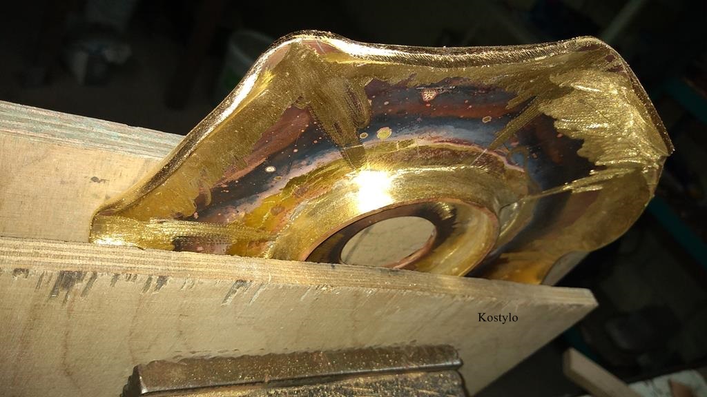 After thorough hand-grinding and smoothing with sandpaper, our luxurious lotus flower ring sculpture began to take shape. The next stage was copper-plating the ring to fill any microscopic holes and create an even surface for gilding.