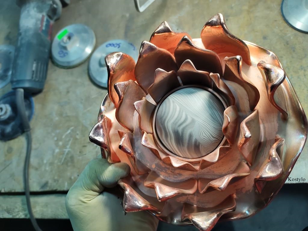 Once all the petals were silver-soldered, we began precise hand-grinding to remove excess solder and achieve a beautiful appearance.