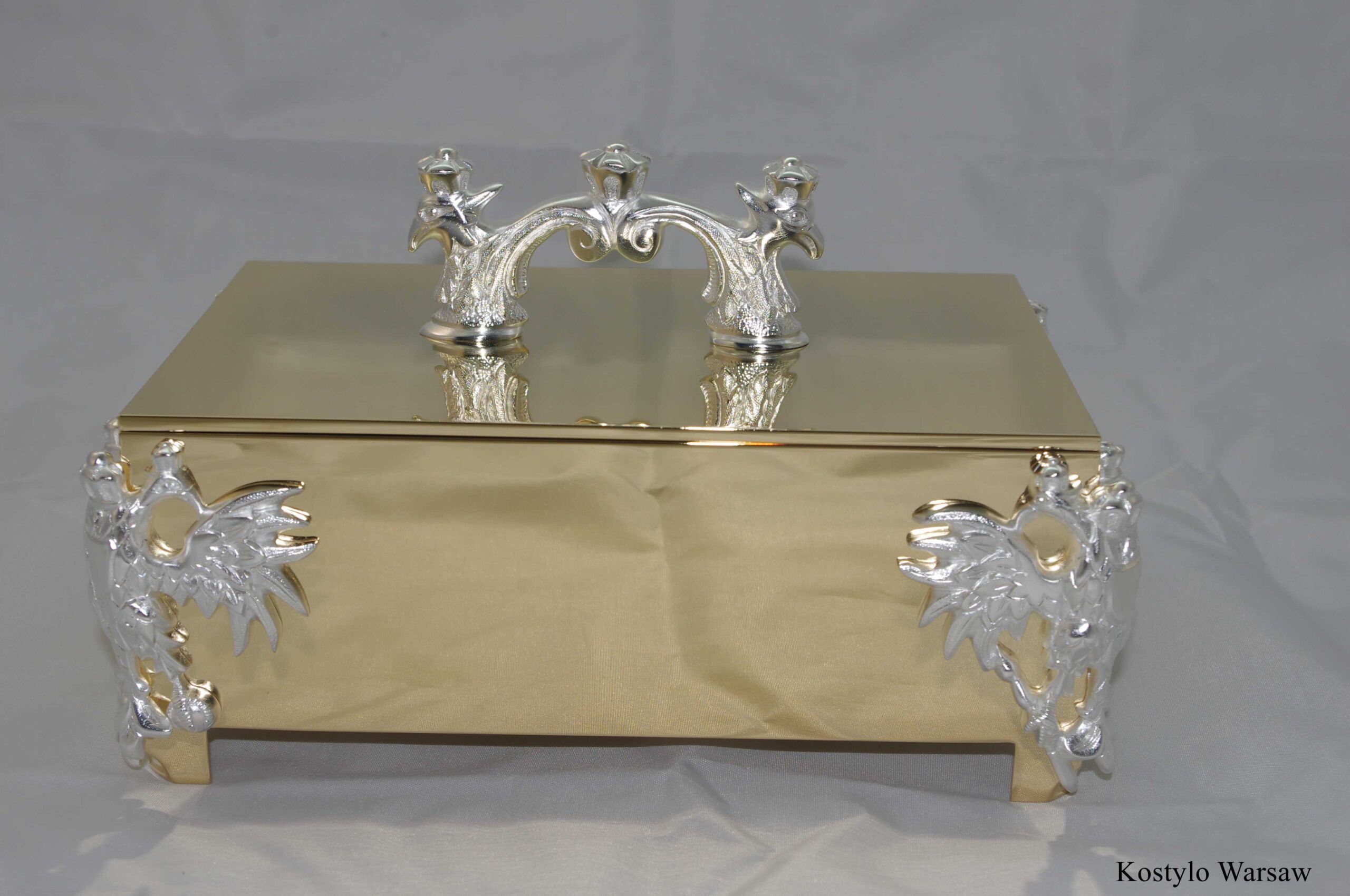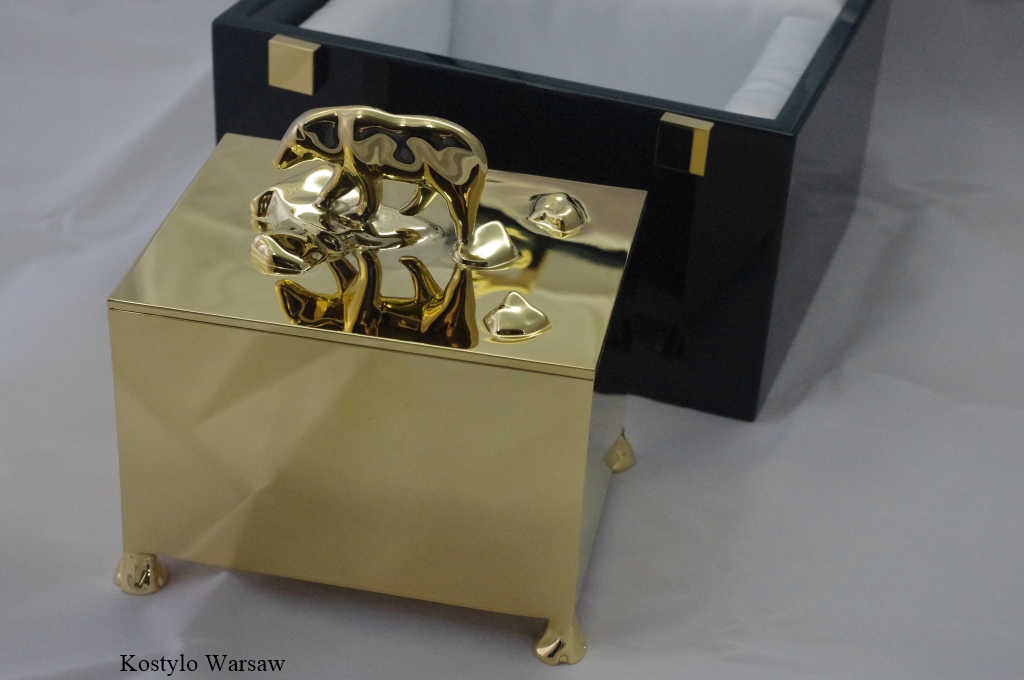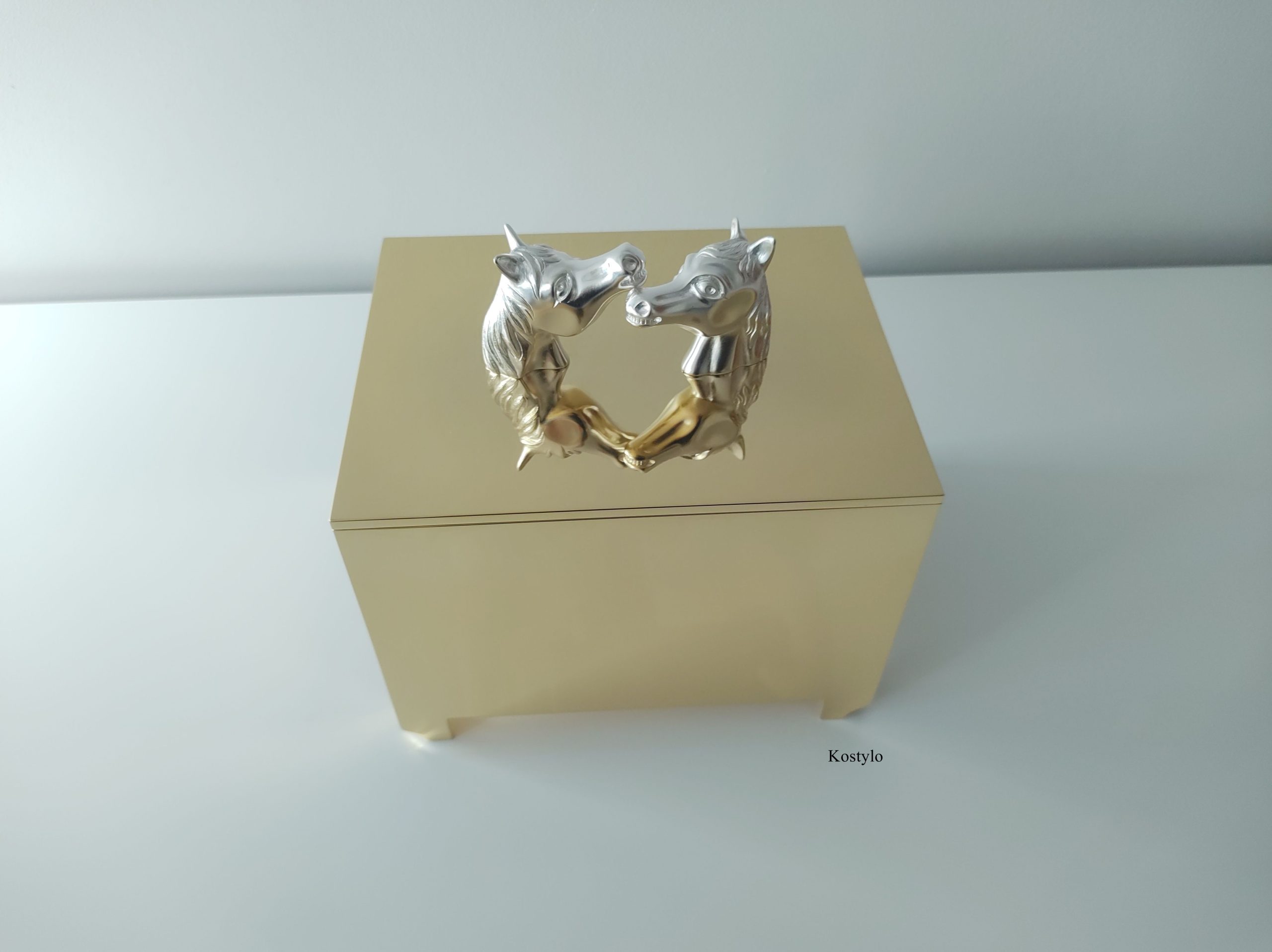 Our box has been meticulously crafted with utmost care and precision to ensure its unique quality. It is gilded with 23-karat gold, while the horse head figures are silver-plated, creating a beautiful contrast. Every detail is meticulously handcrafted, from the design concept to the final product, in our Kostylo Warsaw workshop.