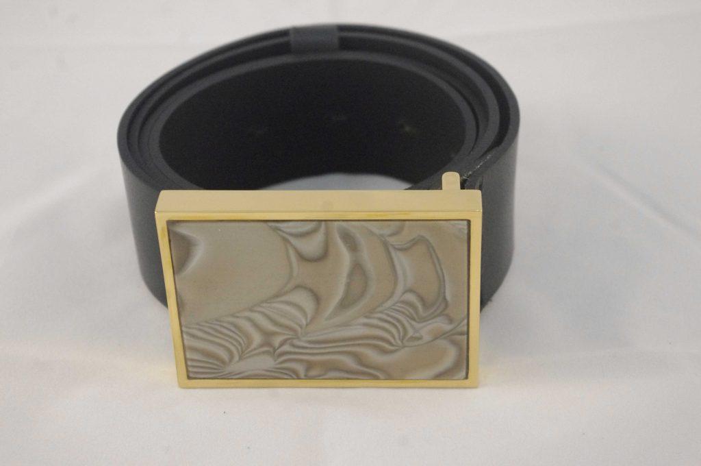 Luxurious gilded belt buckle with beautiful striped flint stone