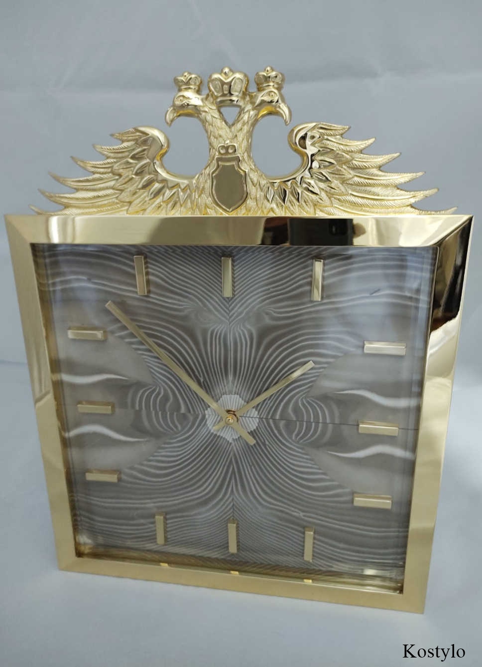 Luxurious wall-mounted gilded clock with a figurine of a double-headed Imperial Eagle