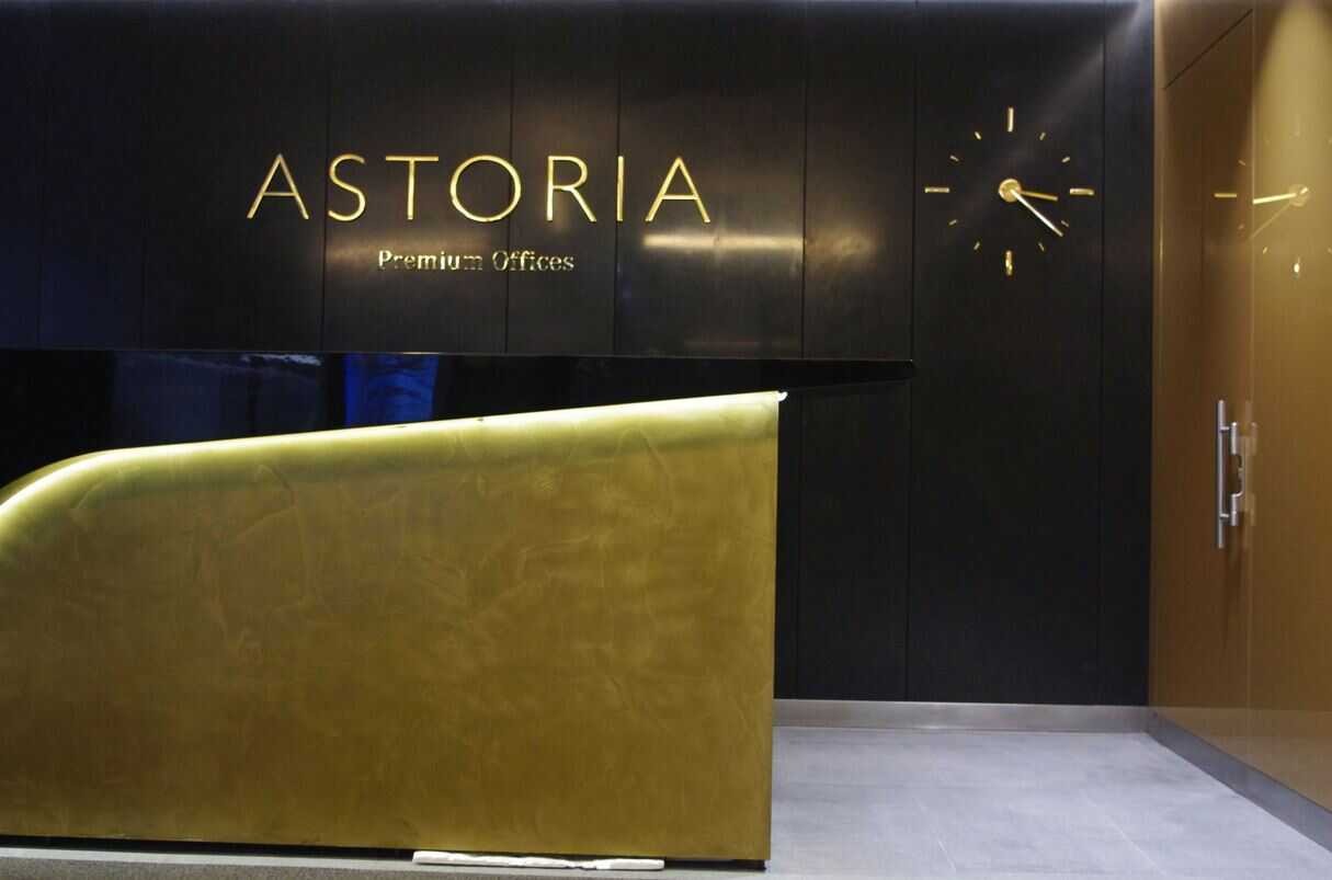 The ASTORIA Premium Offices letter logo, crafted with the exceptional shine of gold, epitomizes elegance and prestige, capturing the essence of a refined workspace. The carefully chosen clock element adds charm, symbolizing a timeless pursuit of excellence. In this handcrafted work, artistry and precision intertwine to create a piece of art that resonates with the spirit of luxury and tradition.